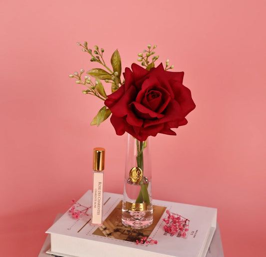 Cote Noire Versailles French Rose Bouquet Magenta in Clear Glass With Gold Crest