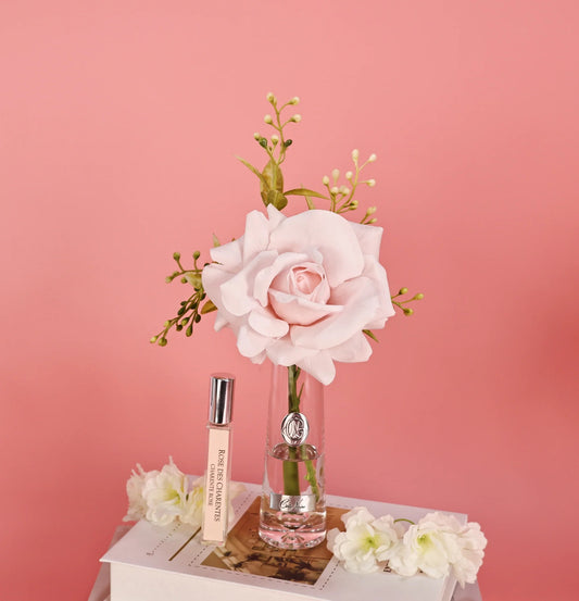 Cote Noire Versailles French Rose Bouquet Pink Blush in Clear Glass With Gold Crest