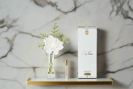 Cote Noire Summer Rose White In Clear Glass With Gold Badge