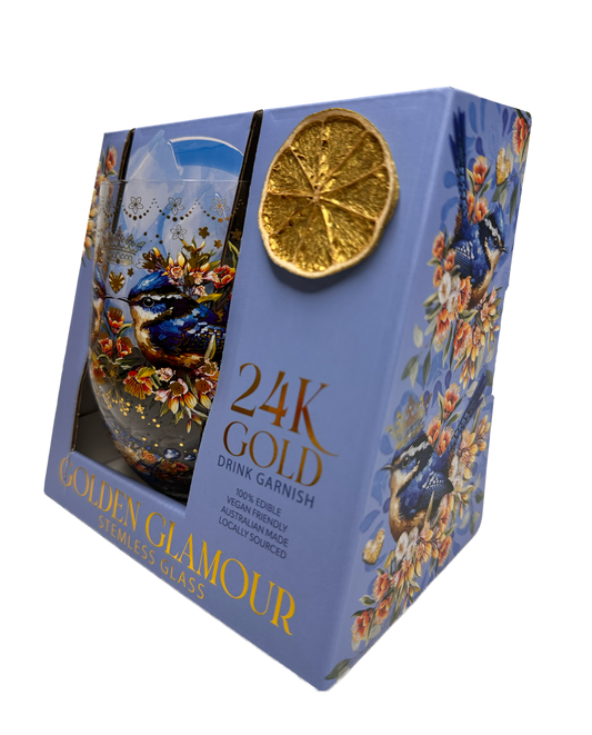 Lisa Pollock Stemless Glass Gold Detailing With 24K Gold Lime Garnish Splendid Waratah