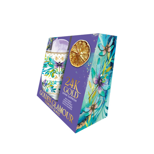 Lisa Pollock Stemless Glass Gold Detailing With 24K Gold Lime Garnish Turquoise Dragonfly