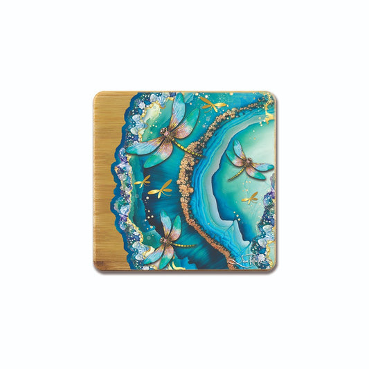 Lisa Pollock Bamboo Coasters Set Of Four Turquoise Dragonfly