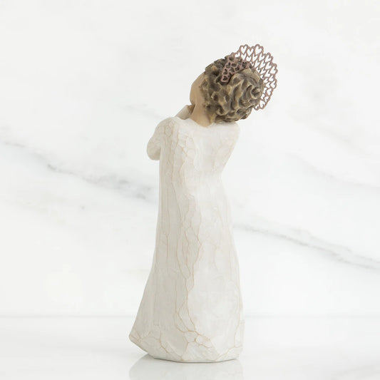 Willow Tree® is an intimate line of figurative sculptures that speak in quiet ways to heal, comfort, protect and inspire. Artist Susan Lordi hand carves the original of each figure from her studio in Kansas City Missouri. Pieces are cast from her original carvings, and individually painted by hand. Expression is revealed through gestures only… a tilt of the head, placement of the hands, a turn of the body. The simplicity of form and absence of facial features signify Willow Tree. It is Susan's hope that these pieces be meaningful to both giver and receiver.