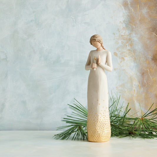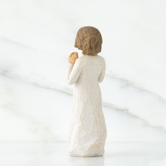 Willow Tree® is an intimate line of figurative sculptures that speak in quiet ways to heal, comfort, protect and inspire. Artist Susan Lordi hand carves the original of each figure from her studio in Kansas City Missouri. Pieces are cast from her original carvings, and individually painted by hand. Expression is revealed through gestures only… a tilt of the head, placement of the hands, a turn of the body. The simplicity of form and absence of facial features signify Willow Tree. It is Susan's hope that these pieces be meaningful to both giver and receiver.