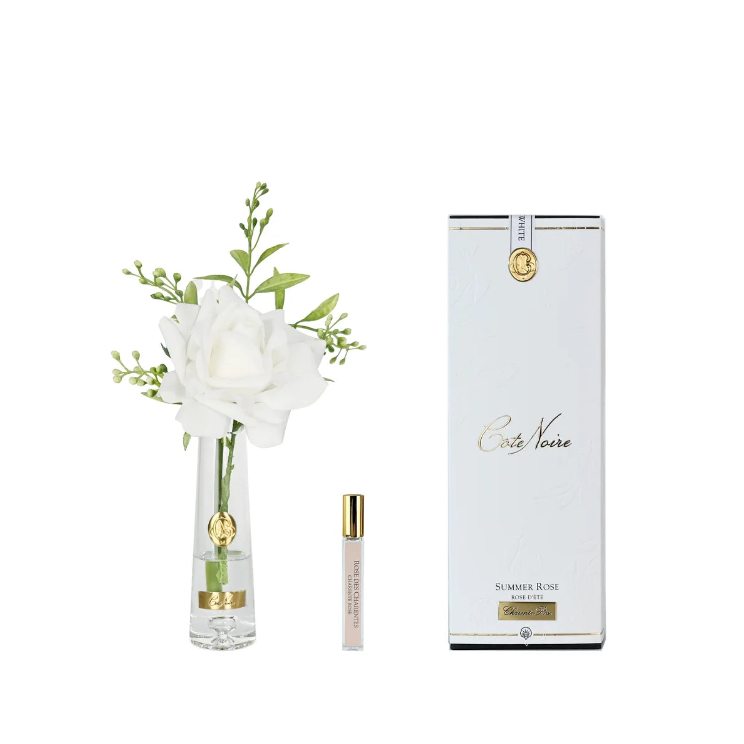 Cote Noire Summer Rose White In Clear Glass With Gold Badge