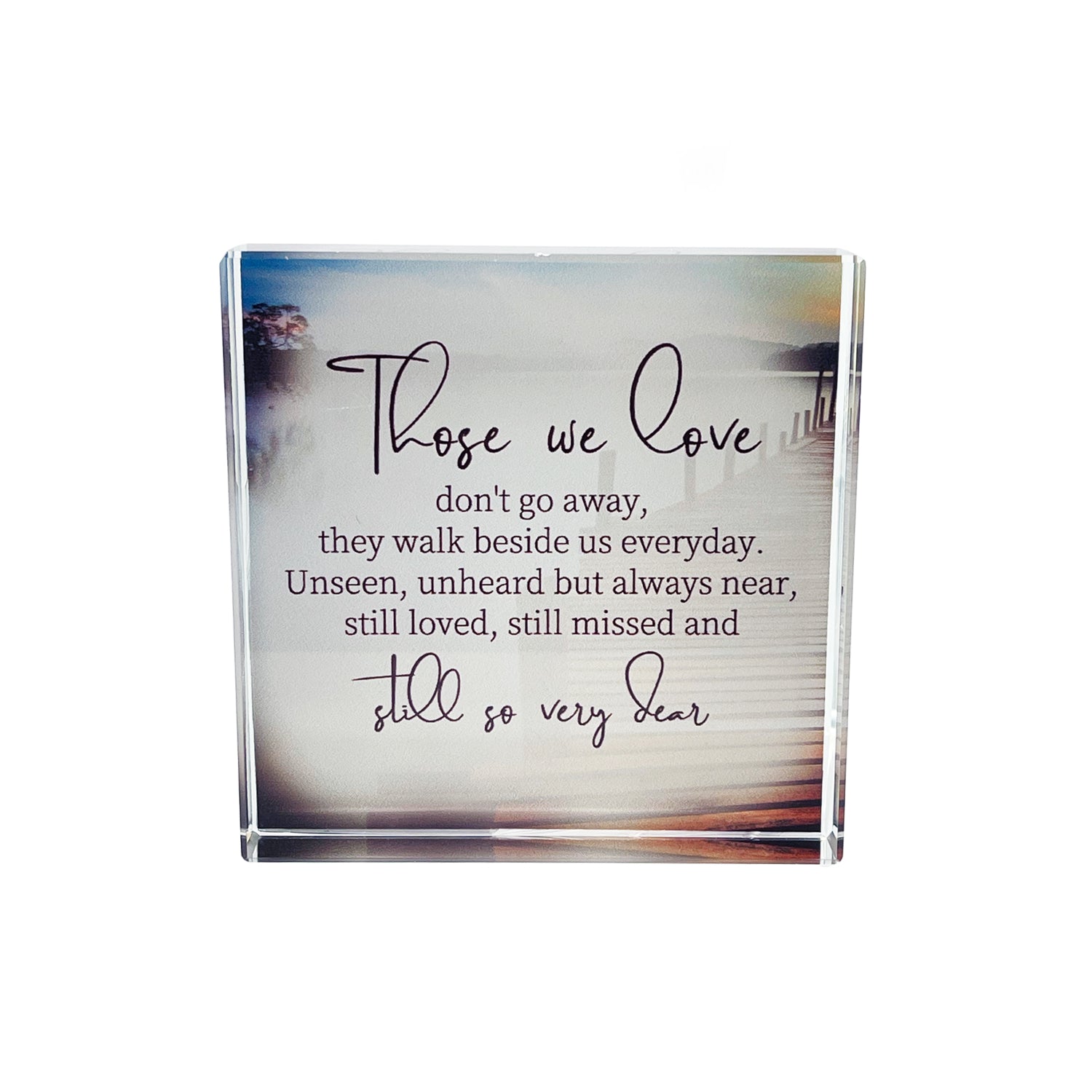 The Crystal Block Verse 'Those We Love' offers an elegant design combined with a heartfelt, personalized touch. Perfect as a memorial gift, this beautifully crafted crystal block features an inspiring verse that celebrates cherished memories. Its timeless design makes it a meaningful keepsake for honoring loved ones.
