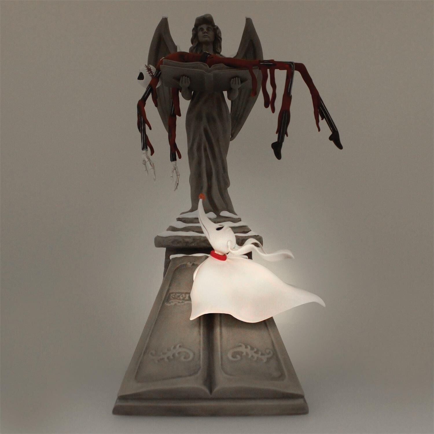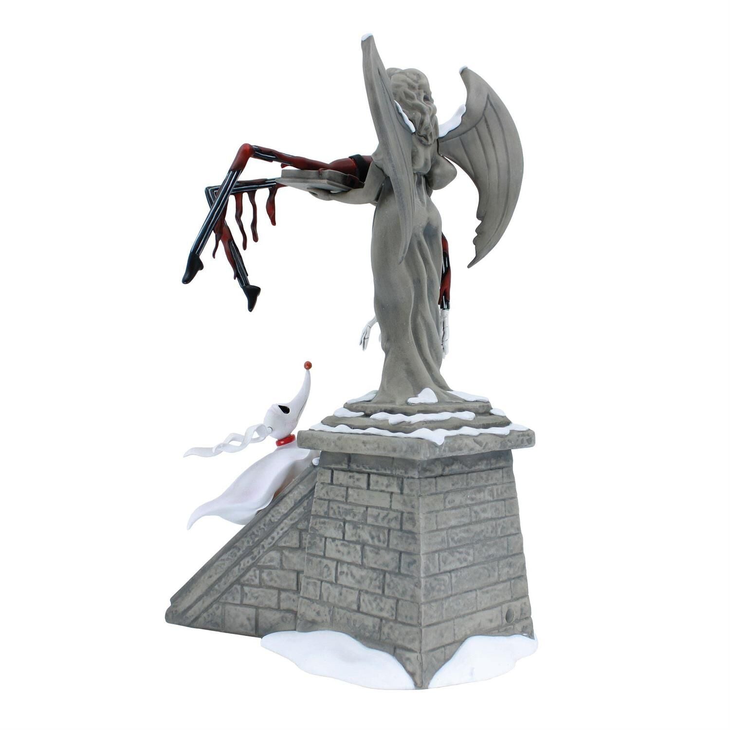 A light up Zero looks up to his defeated master Jack Skellington as he falls from the sky and into the arms of an angel tombstone. Expertly crafted and highly detailed, this is a new statue celebrating the fan favourite Tim Burton's The Nightmare Before Christmas.