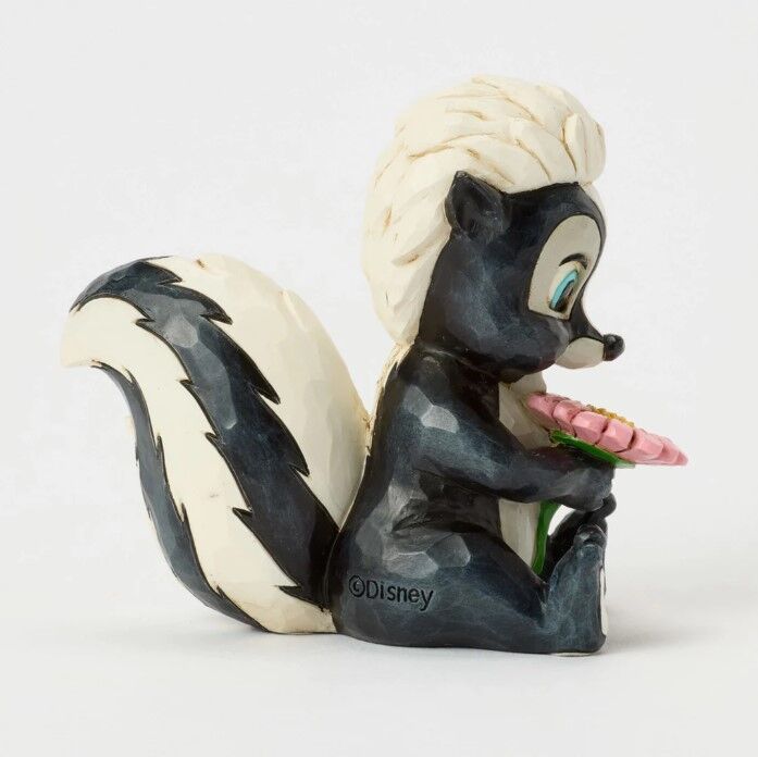 This darling Jim Shore miniature features Flower, the skunk from Bambi, adorned with striking rosemaling and holding a handful of fresh flowers. With a bright smile and childlike love, she radiates sweetness and charm.