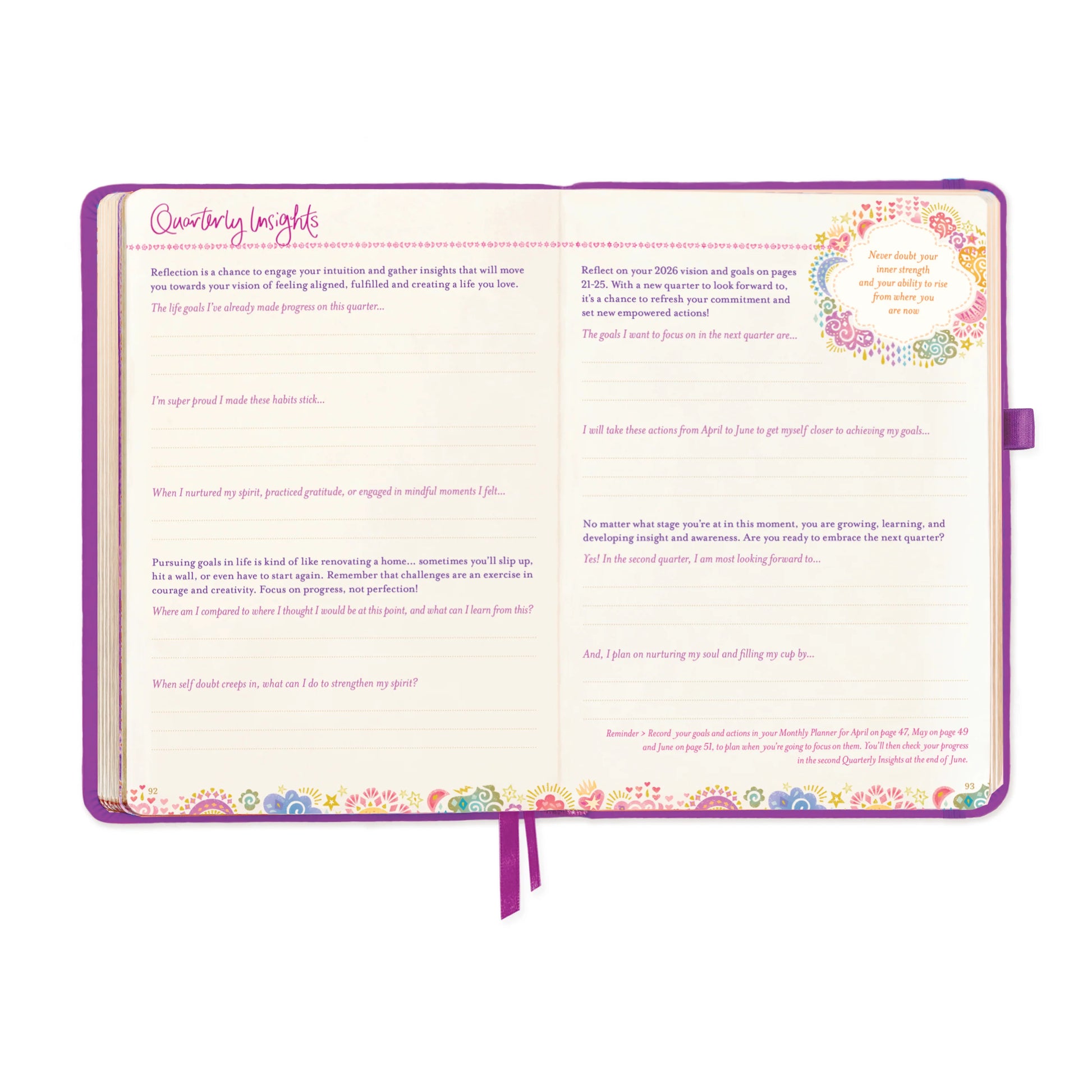 While the cover title and message of each Intrinsic Diary have different themes, all diaries have the exact same inside pages, which include: