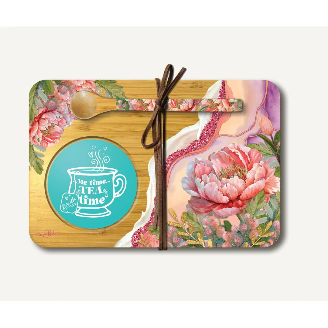 Add charm to your tea time with this Eco-friendly bamboo tea tray featuring the vibrant and original 'Peony' design by Lisa Pollock. Crafted with high-quality materials, it offers durability while showcasing intricate artwork that elevates your serving experience. Measuring a practical size, it is perfect for serving tea or snacks and is easy to clean with a simple wipe-down. Hand washing is recommended to maintain its unique finish.