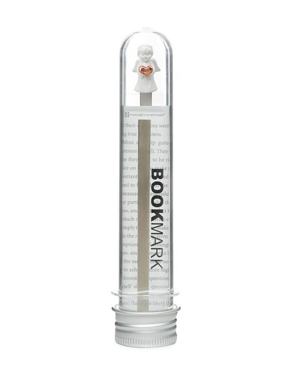 This METALMORPHOSE Bookmark features a delicate angel design holding a heart, making it both functional and symbolic. Crafted from durable metal, it is designed to keep your place in books while adding a touch of elegance. Slim and lightweight, it fits seamlessly between pages without causing wear or damage. Ideal for book lovers, it also makes a thoughtful gift for any occasion.