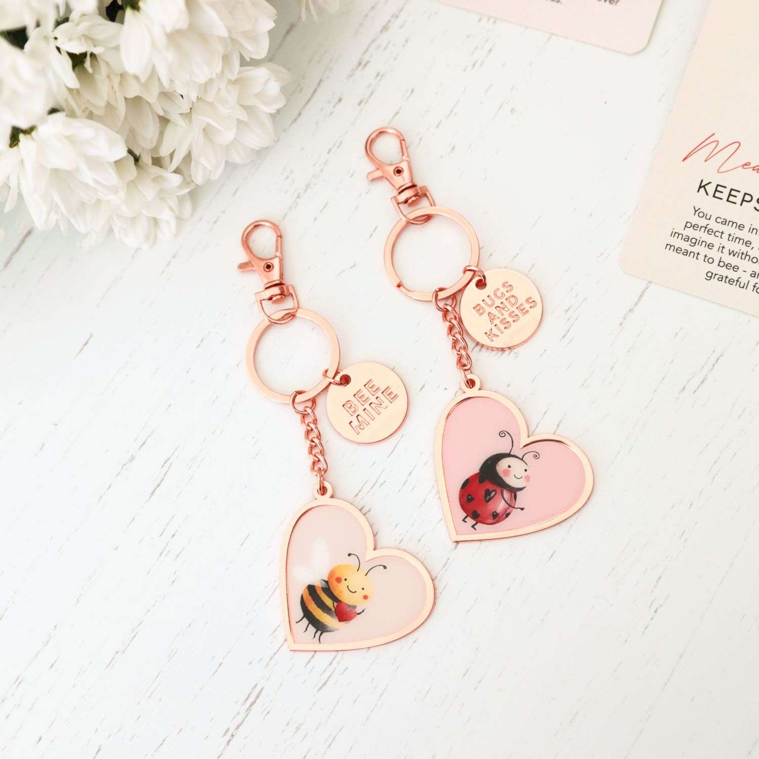 Celebrate love with the Valentine's Day Bee Keyring "Bee Mine," featuring an adorable bee design paired with a heart charm. Crafted from durable materials, this keyring ensures lasting quality while adding a touch of charm to your everyday essentials. Perfectly sized and beautifully detailed, it comes ready to gift, making it an ideal choice for Valentine's Day or any special occasion.