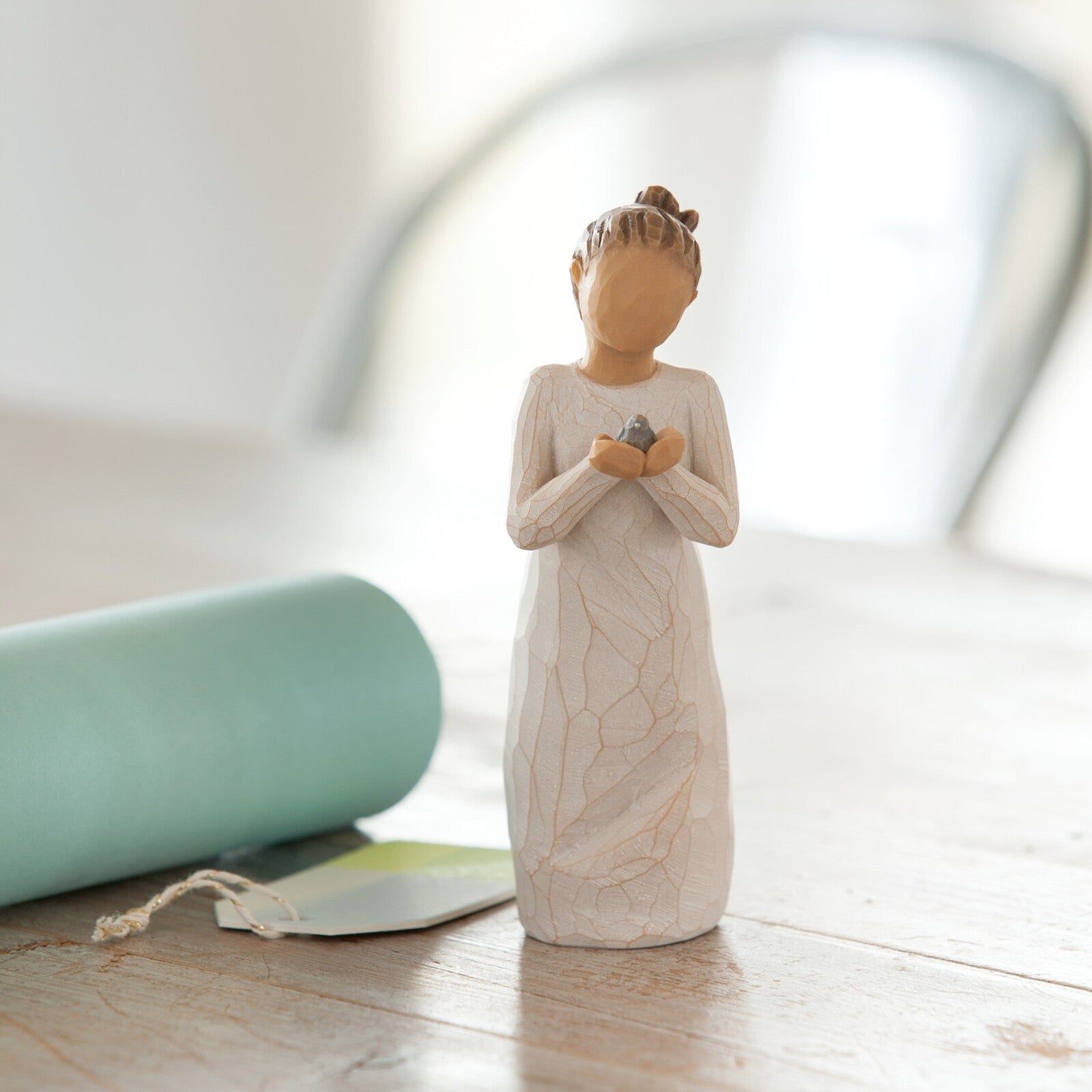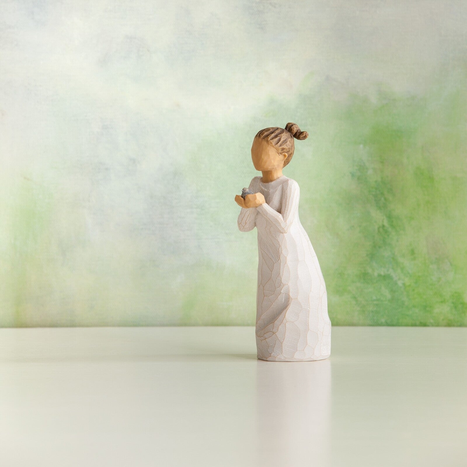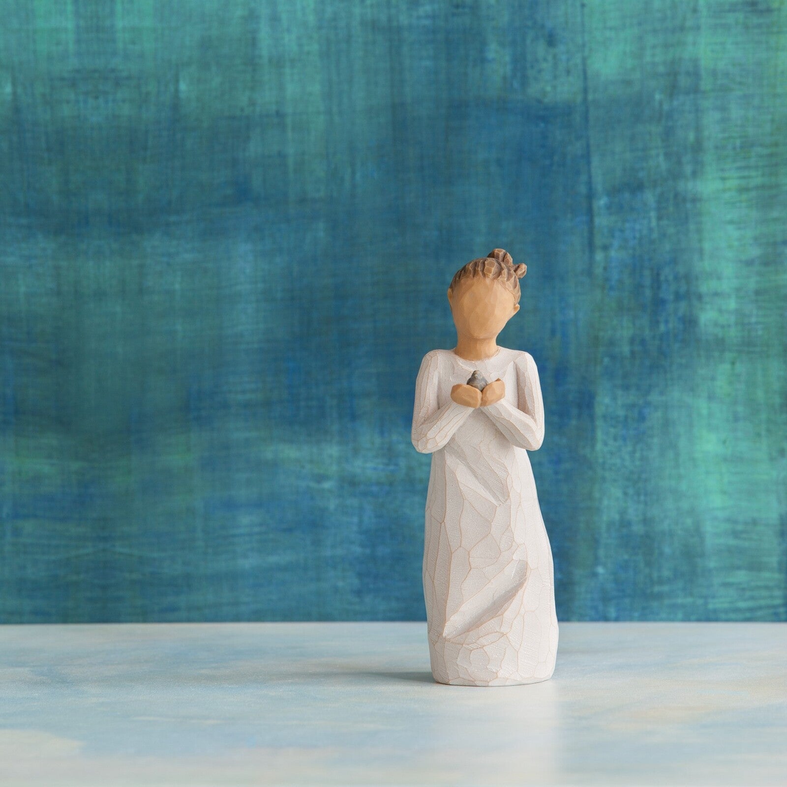 The gesture of this figure is caring and protective. The small baby bluebird could be a metaphor for something precious—perhaps someone we love, perhaps our environment, perhaps our own inner happiness…