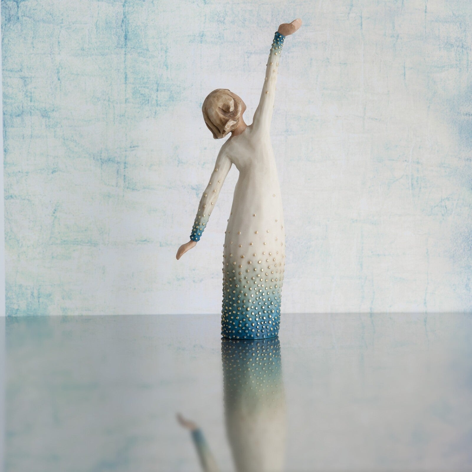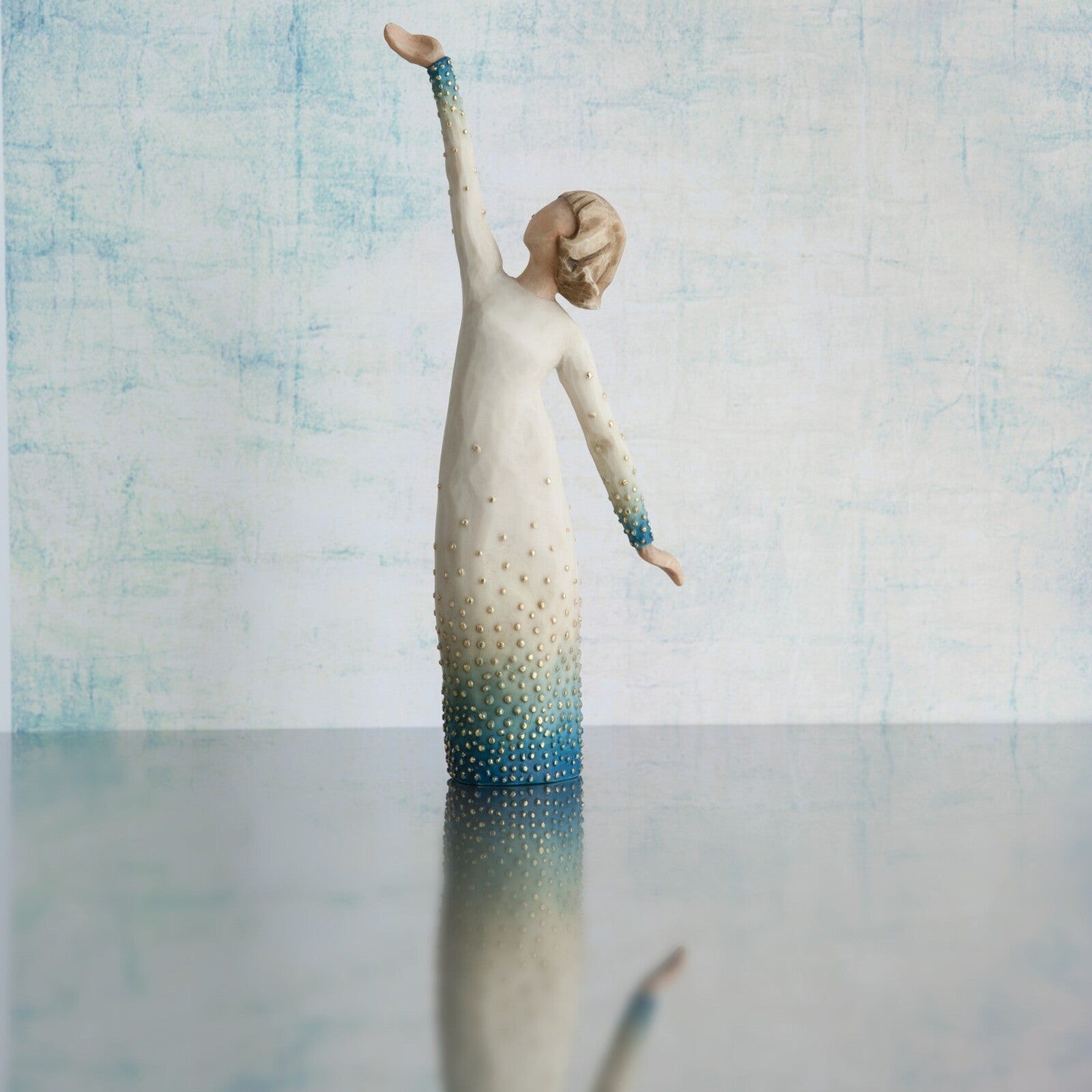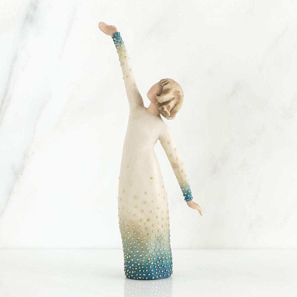 "I was sculpting this piece at the time of the Winter Olympics. I was inspired by the strength and perseverance of young female competitors in figure skating, snowboarding, skiing... their confidence exudes with every gesture and movement, literally shining with happiness and pride. We all have the capacity to shine from within, so I wanted this figure to be a reminder of our own inner strength. Shine could be a congratulatory piece for a milestone reached, or a healing piece to show support and belief in someone. I wanted the form to be visually uplifting... a little reminder of personal goals, met. I embellished the surface with gold to suggest inner light and energy." ~ Susan Lordi