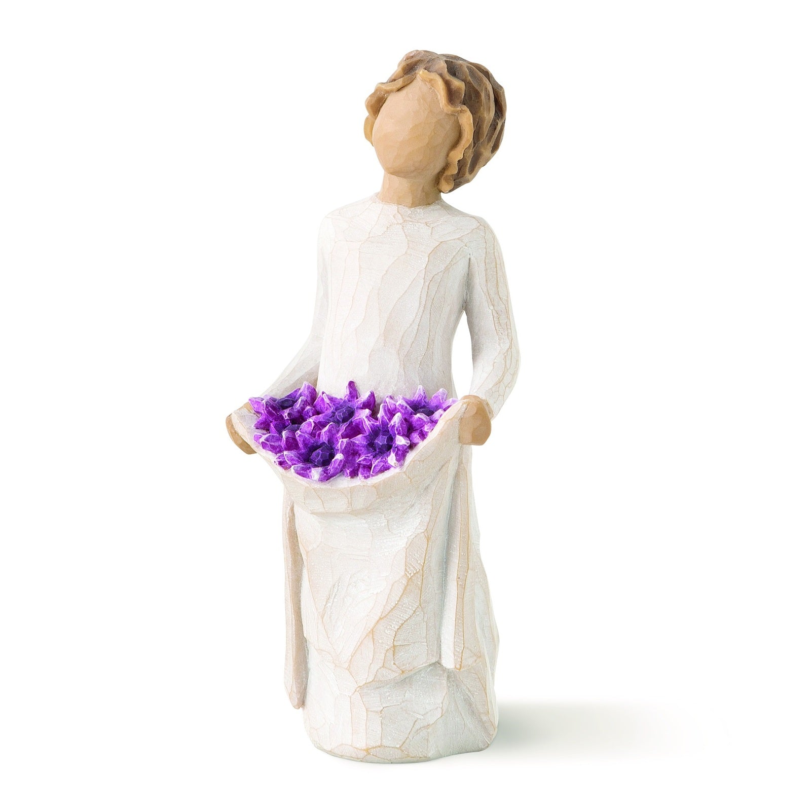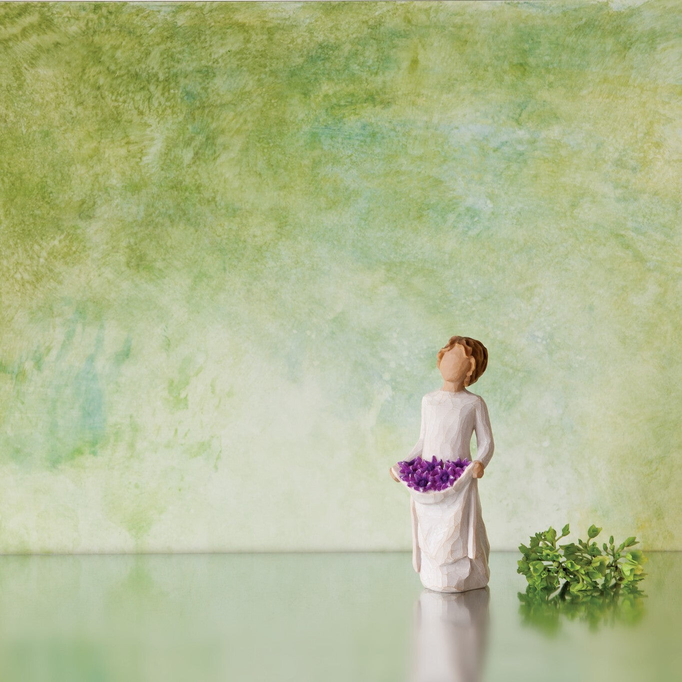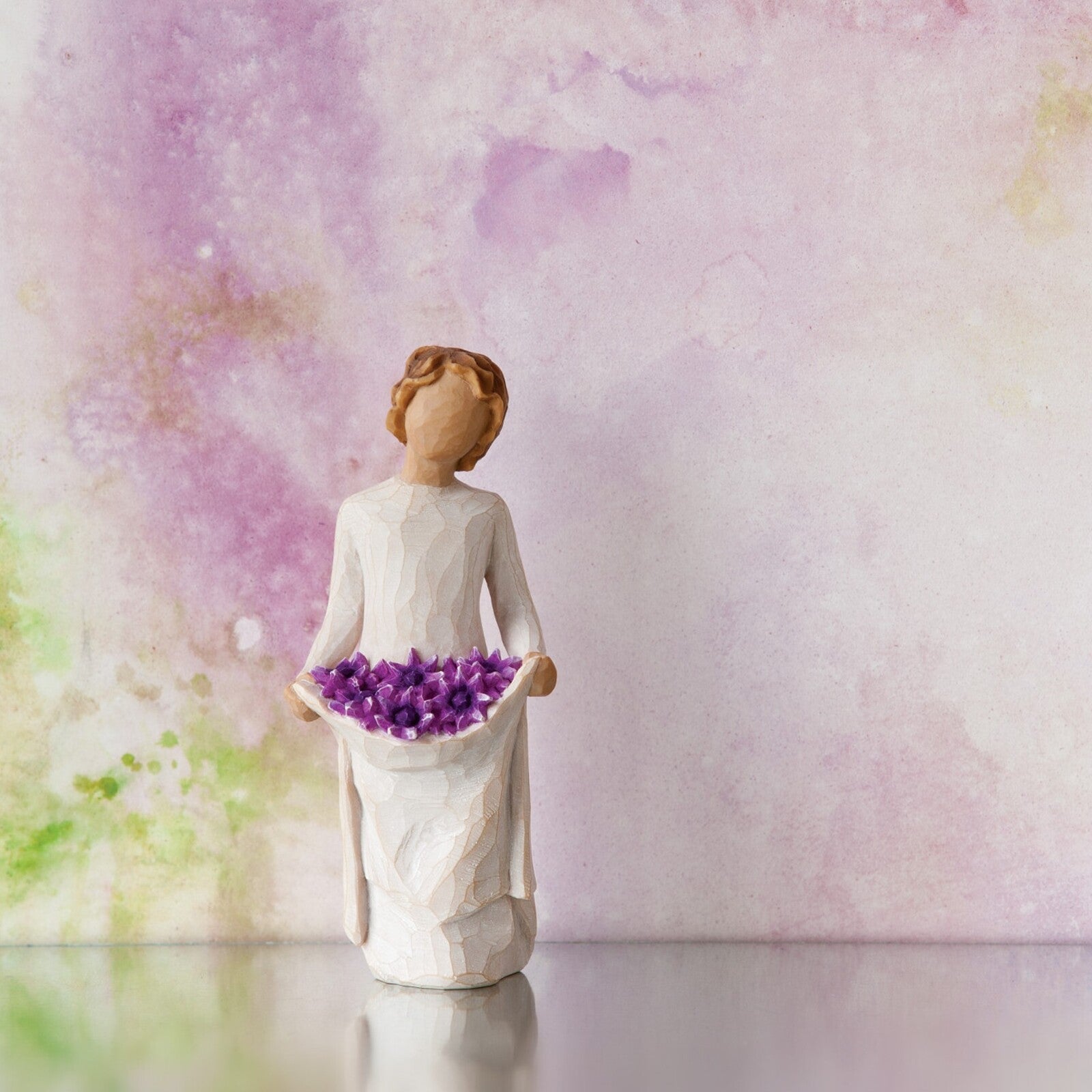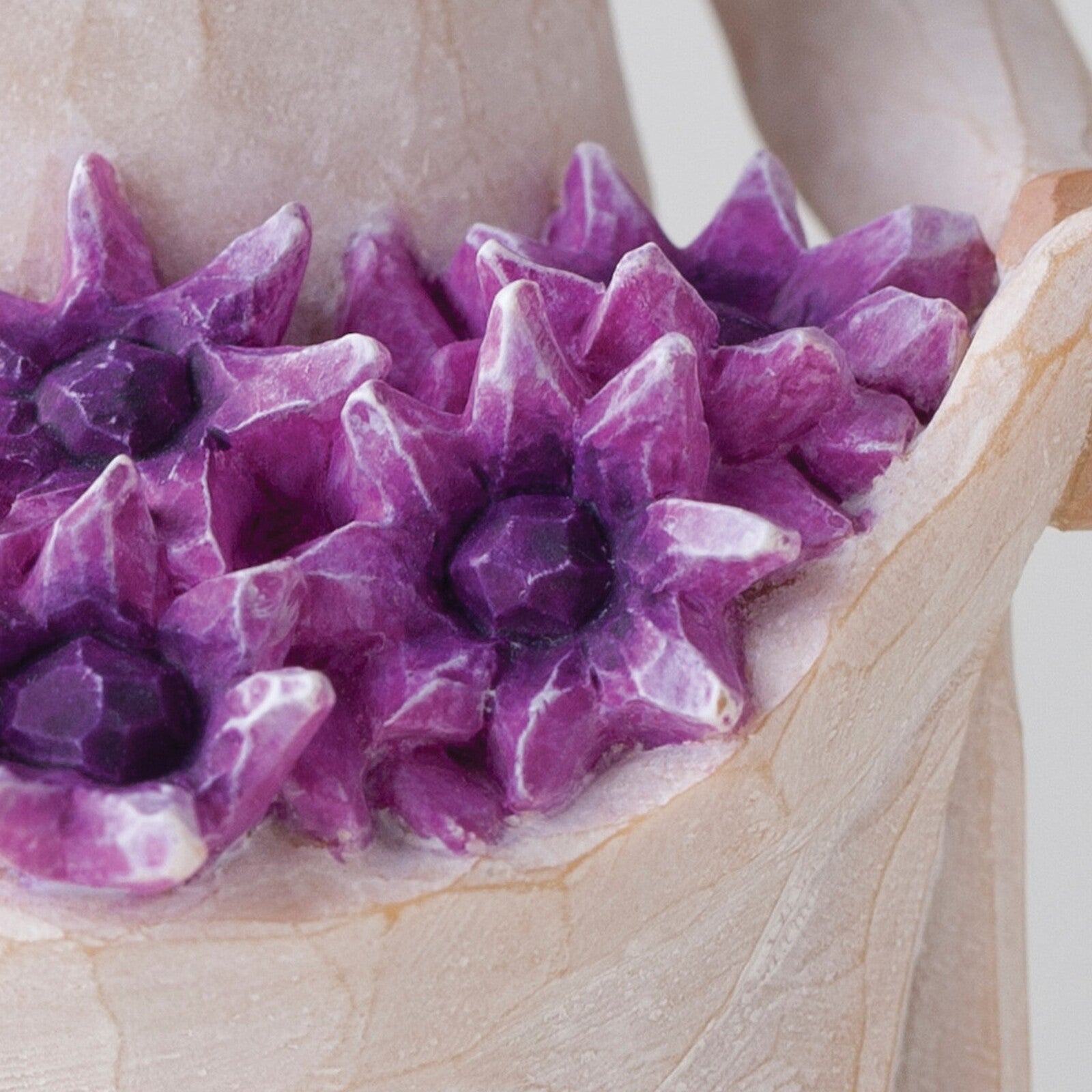 The figure of a lady holding a collection of flowers. A gift that expresses love and caring… or for those who love flowers!